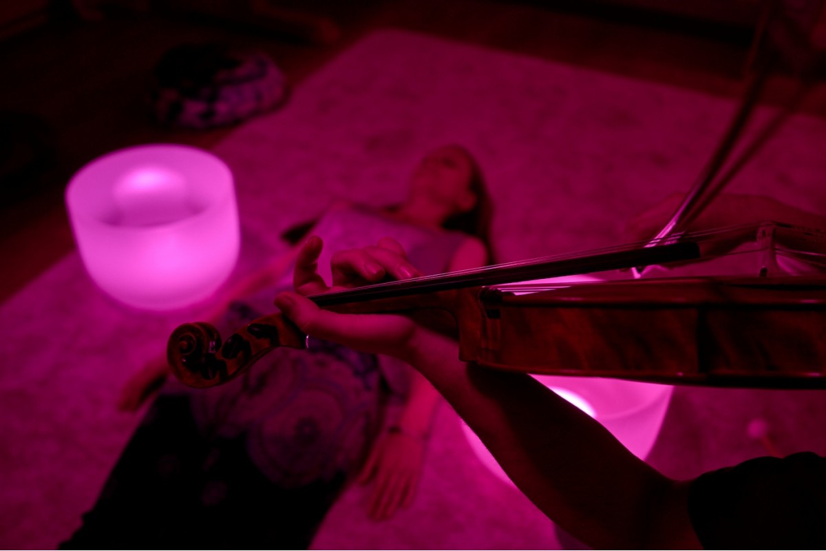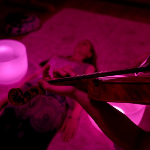 - "Thank you again for the wonderful experience. I love music, but I have never experienced such freedom and relaxation with music. The vibration of the huge Tibetan bowl carried my worries into space. The gong opened me to the journey through infinite space. With the next flowing music, a wonderful feeling of relaxation, breathing, and traveling through the endless foothills of high mountains ensued. The violin's voice was incredibly beautiful. On the bed, I experienced a sensation of my body dissolving in space - the greatest experience of complete relaxation, feeling only music, as if the body was part of space, without boundaries. Drops of sparkling dew fell above my head on the morning grass."
